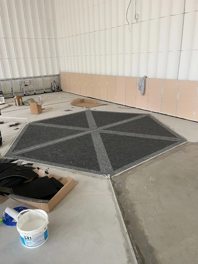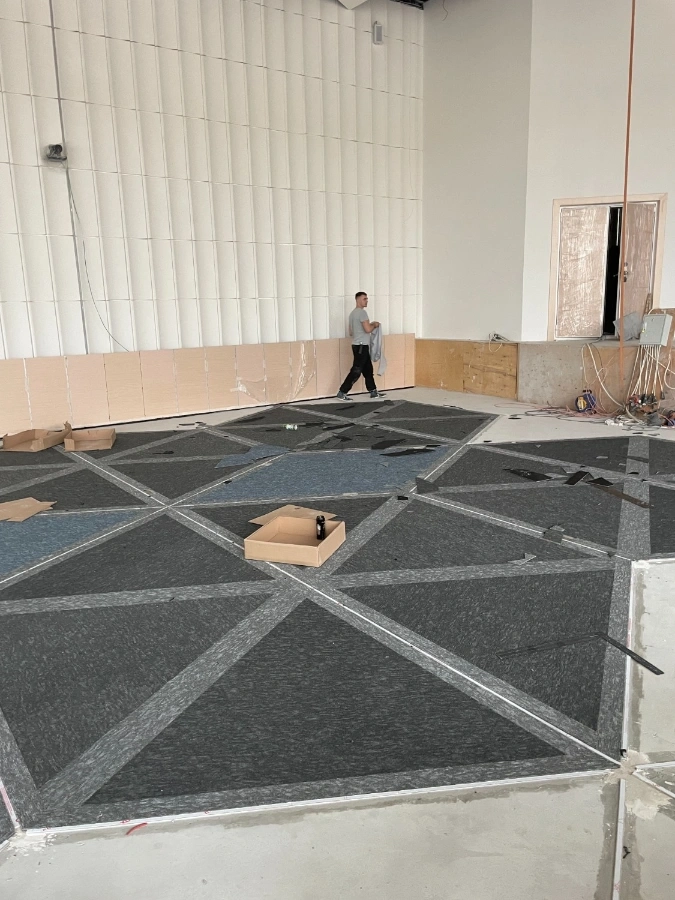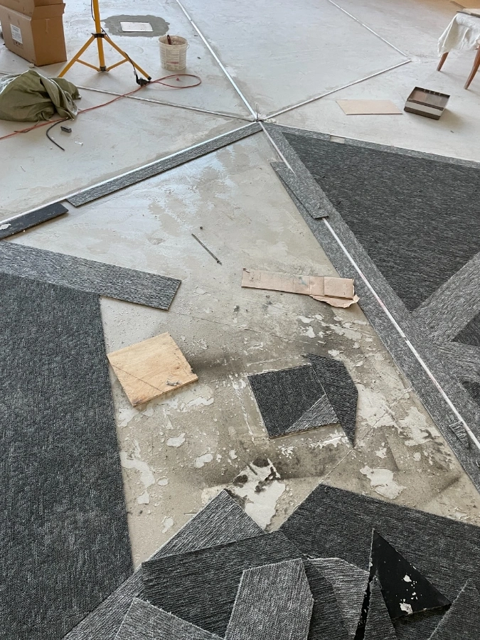 Работа включала в себя не только укладку ковровой плитки, но и подготовку поверхности, удаление предыдущего покрытия и выравнивание пола