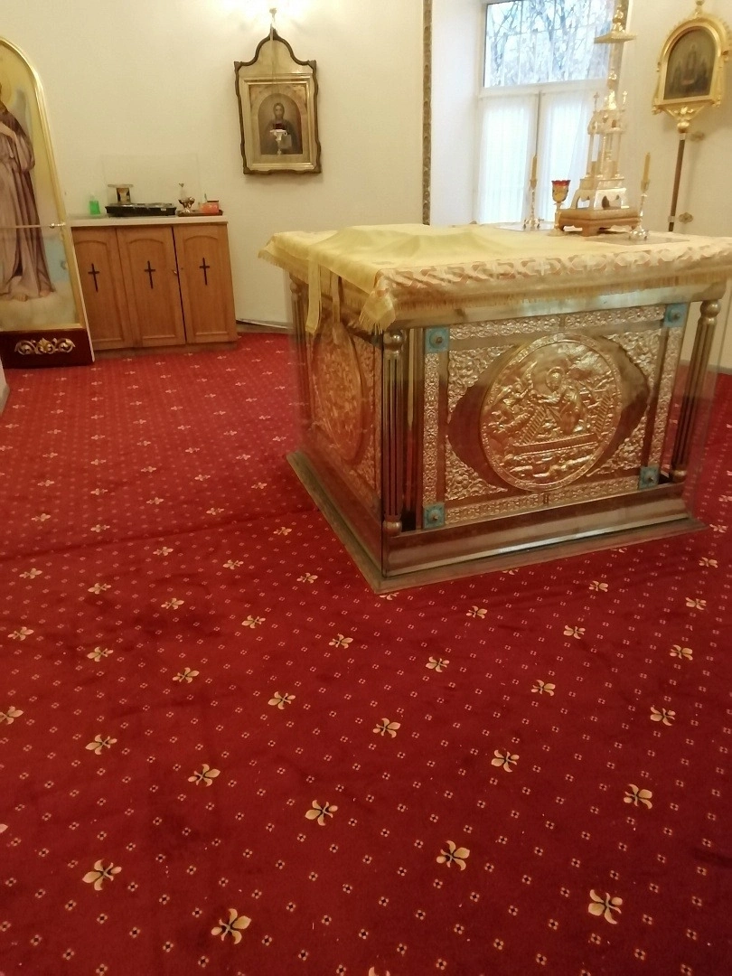 Укладка дорожки в Церкви Владимира Равноапостольного при Епархиальном доме
