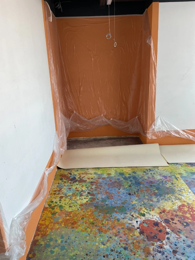 Укладка ковровой плитки в офисе мастерской "КОРОБКА МЕЛА"