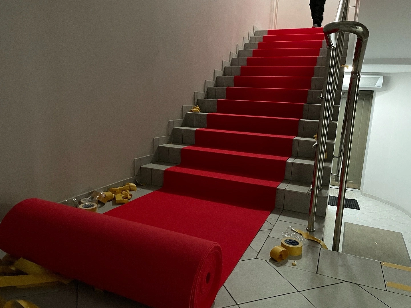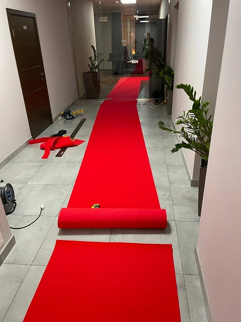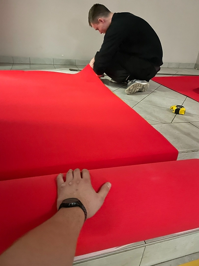 Ночью,перед мероприятием произвели укладку дорожки для торжеств.