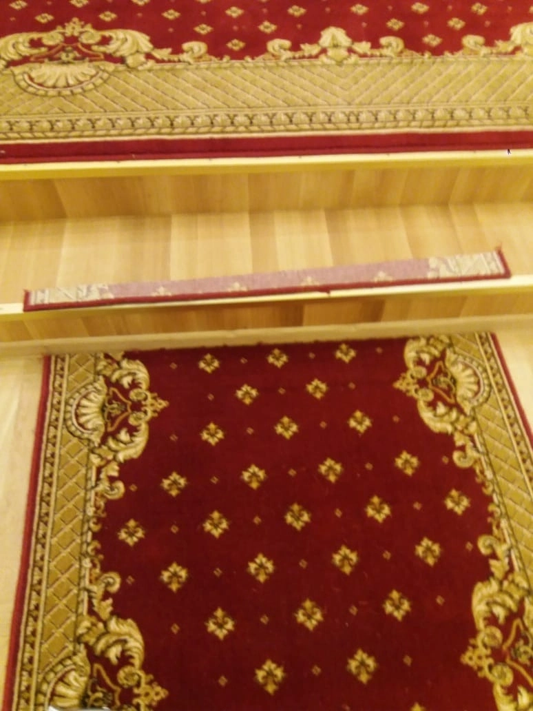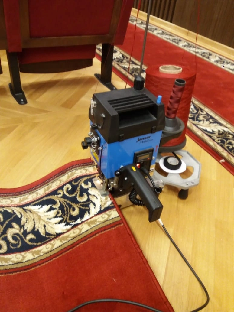 Сделали оверлок на ранее уложенных дорожках- рубиново красной ниткой с синеватым оттенком , состоящей из полиамида тройного кручения.