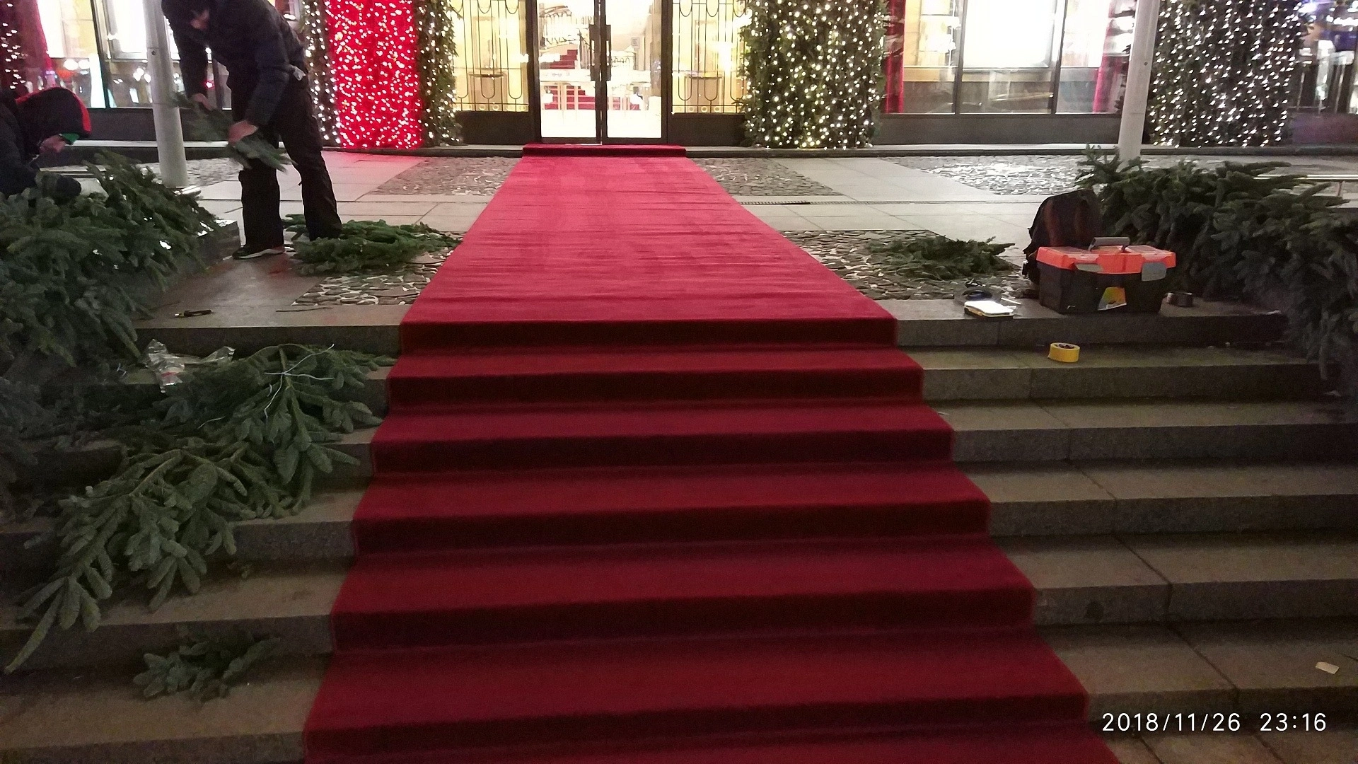 К новогодним праздникам уложили дорожку на входную группу магазина.