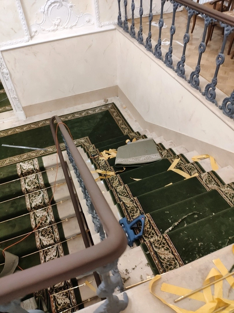 Сделали демонтаж. Постелили дорожку из прочного синтетического волокна. Установили ковродержатели.