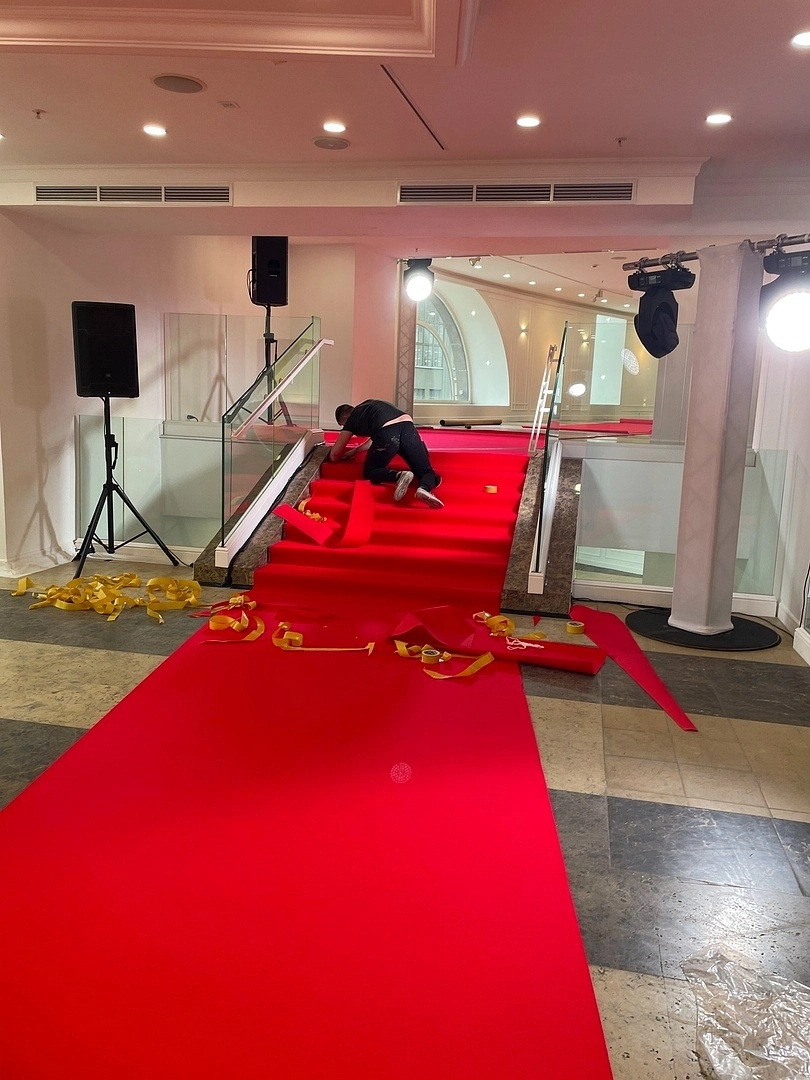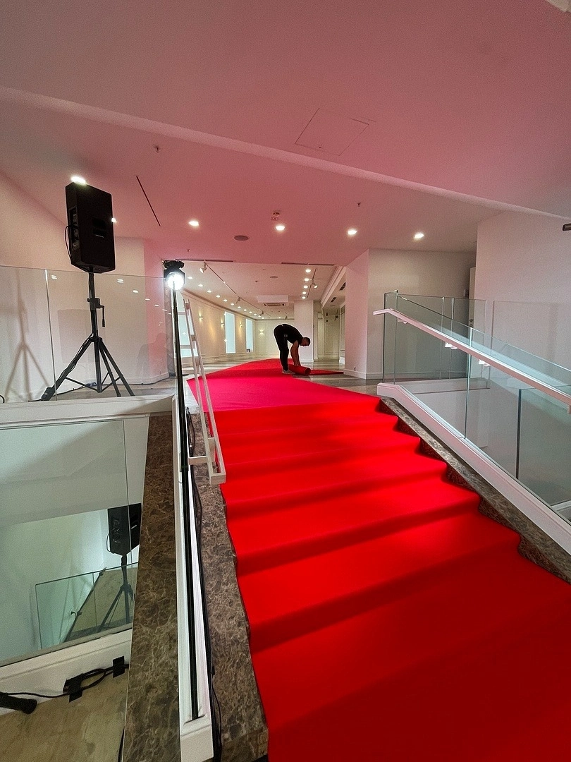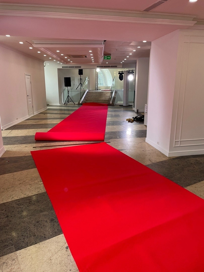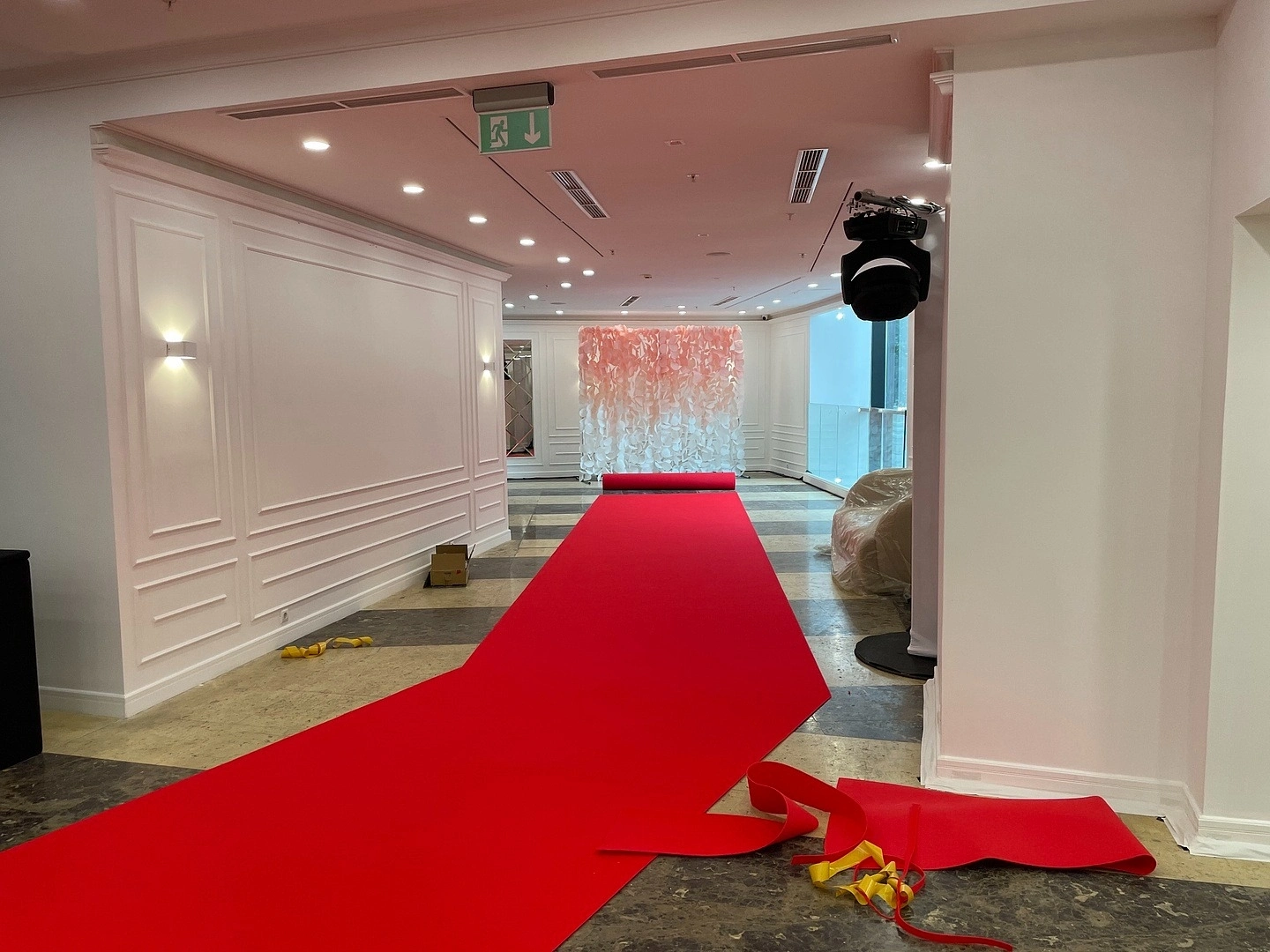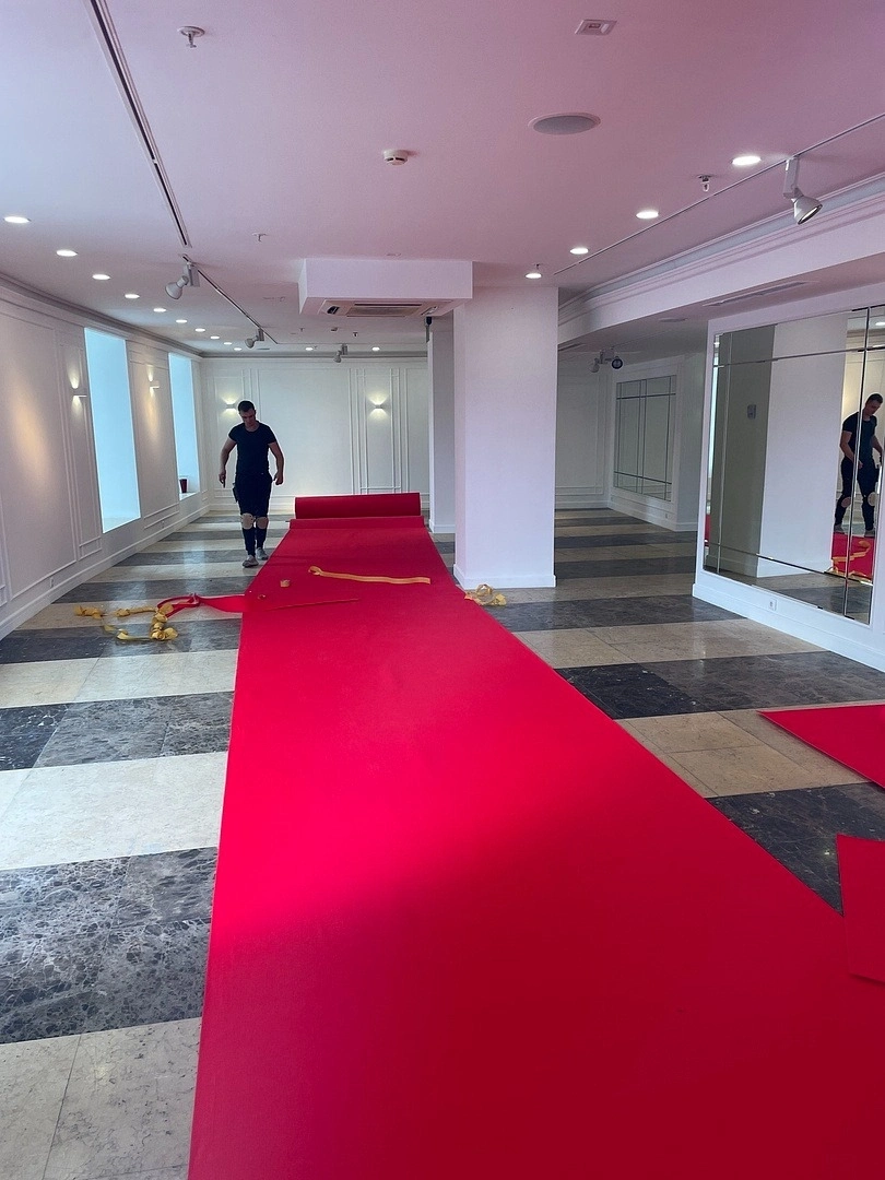 Для первого показа в модельном агентстве уложили на скотч дорожку для торжеств.
