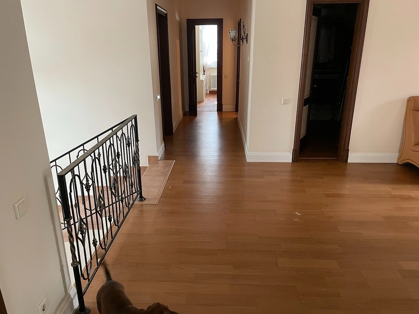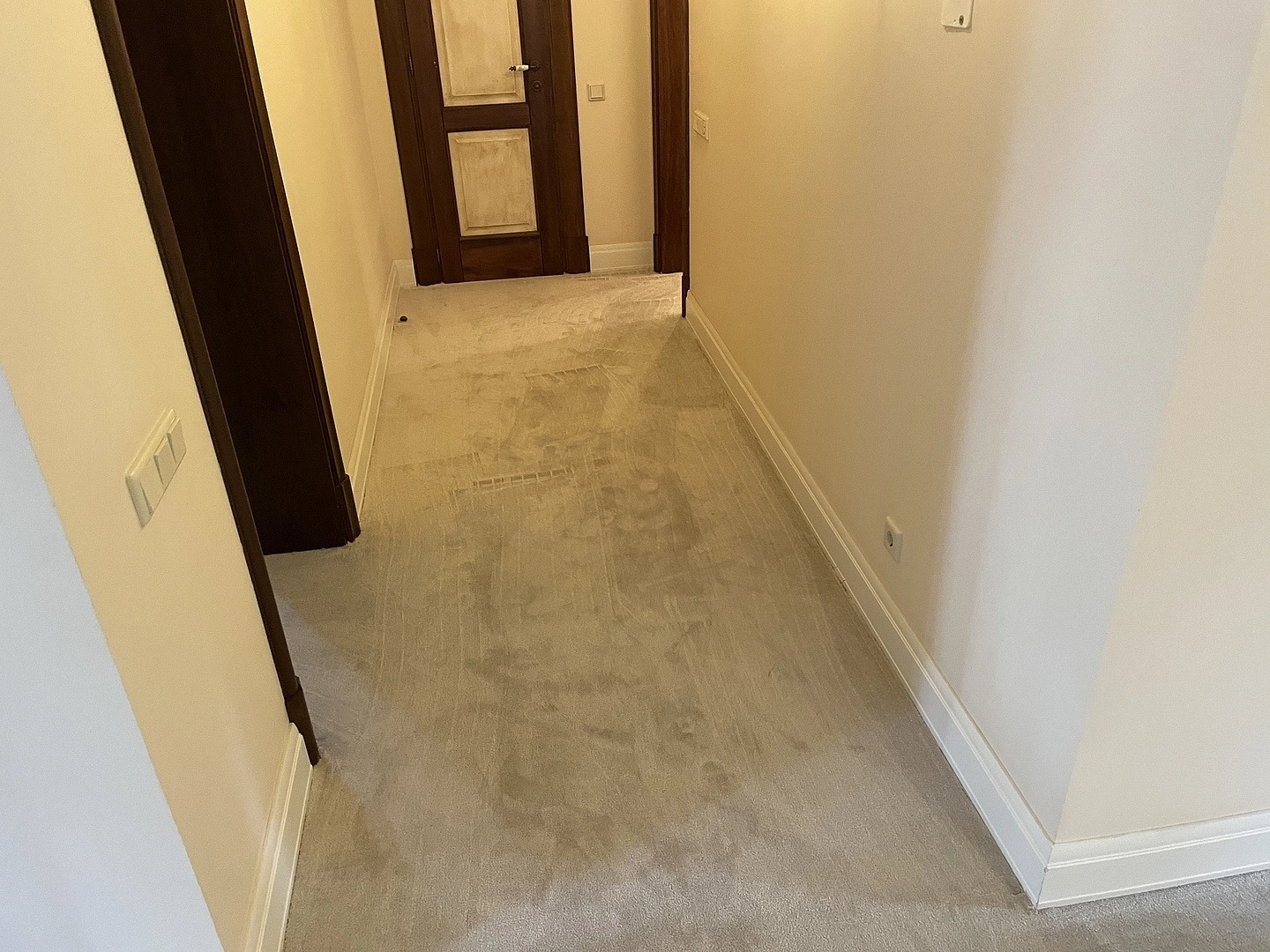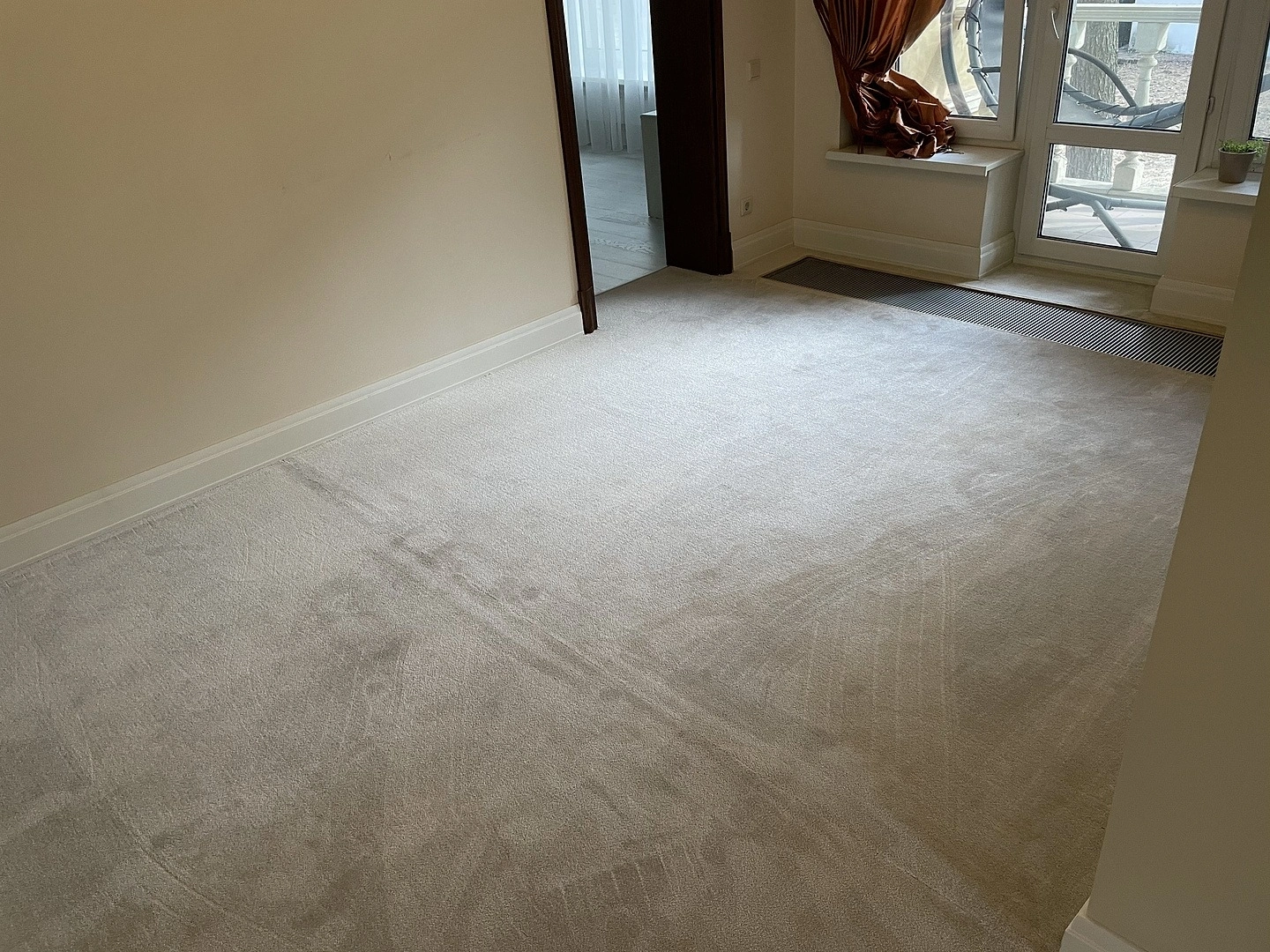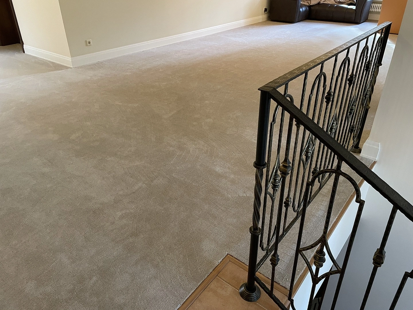 На втором этаже коттеджа уложили ковролин. Сварили швы,сделали оверлок на месте.Укладку делалали на двусторонний скотч.