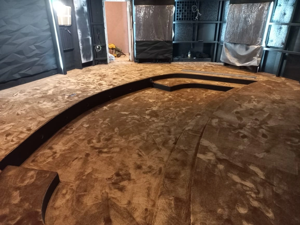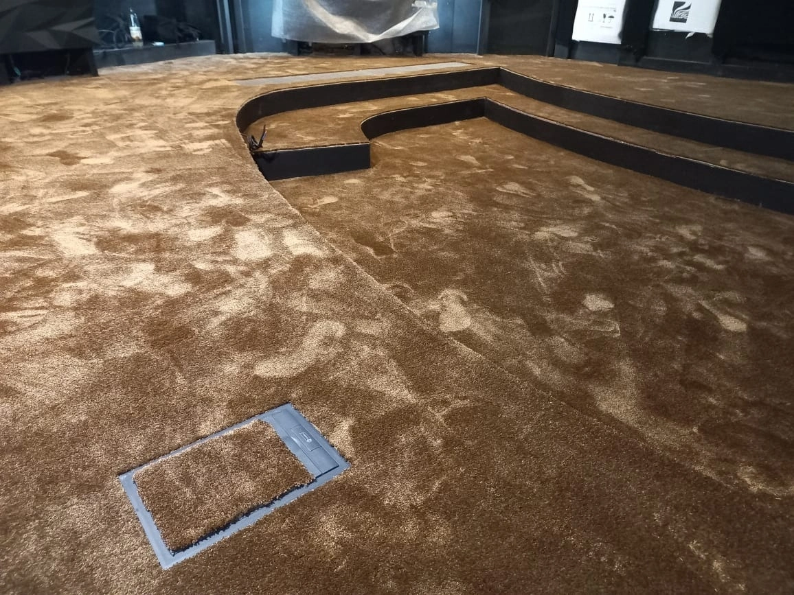 Сделали укладку ковролина в домашнем кинозале. Сделали спайку швов коврового покрытия. Укладка была не клей.