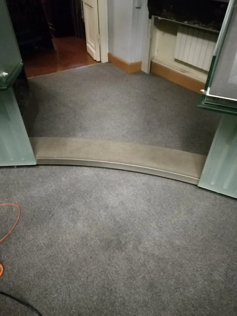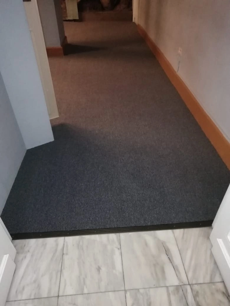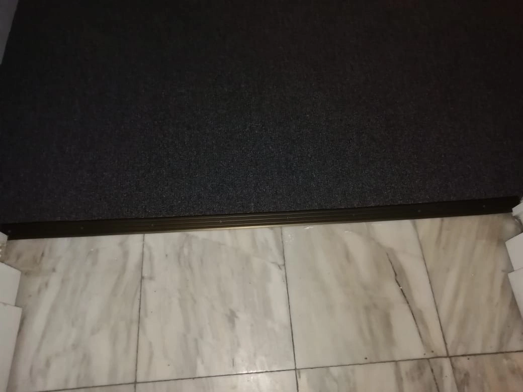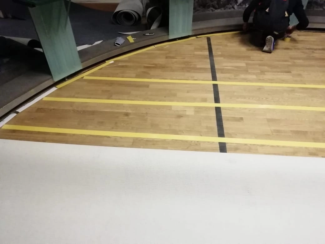 Сделали демонтаж старого покрытия.Уложили новое. Стыковали два полотна и спаивали стык термолентой.Укладку сделали на скотч.