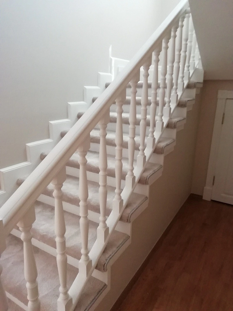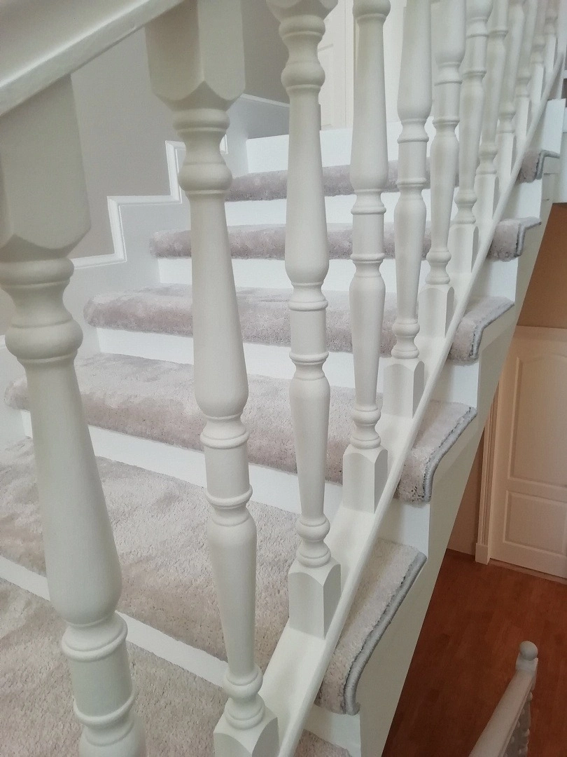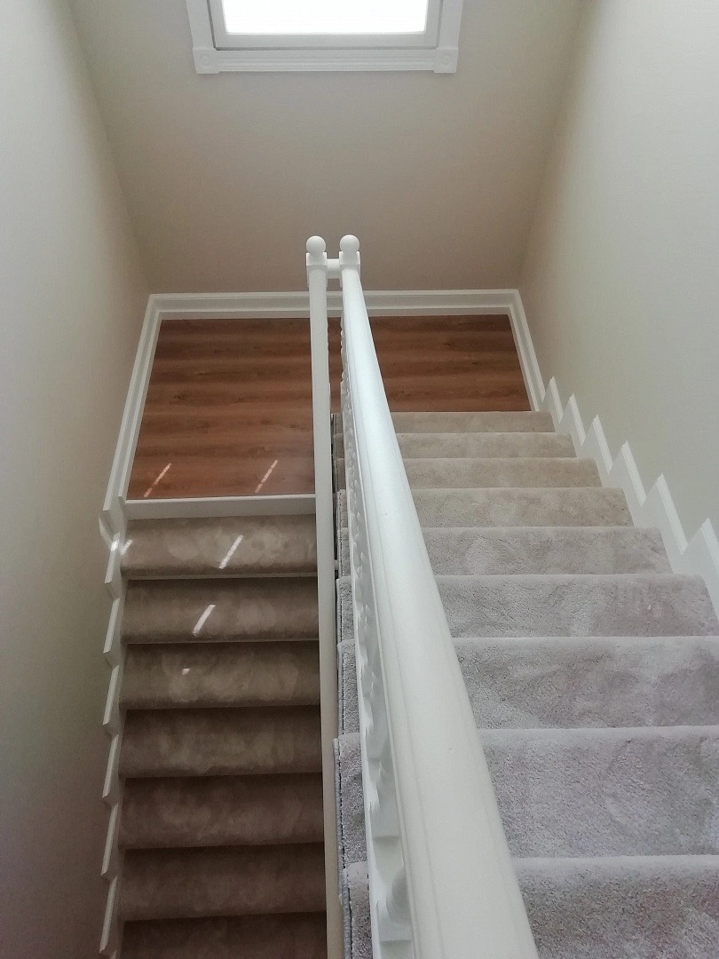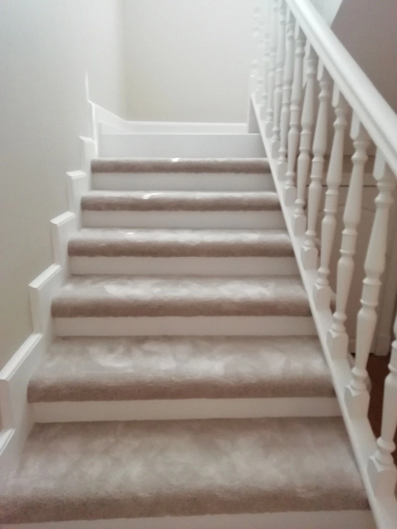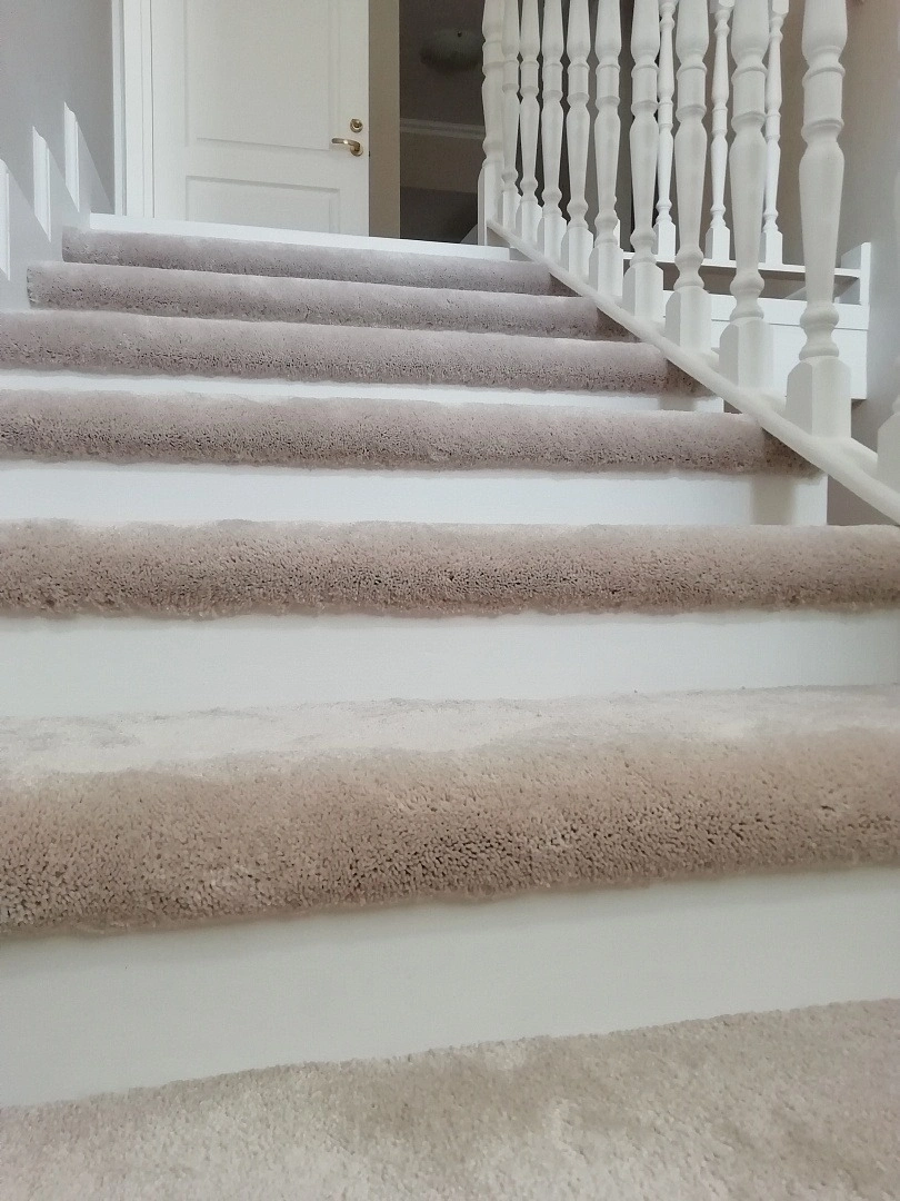 Уложили ковролин на лестницу,сделав накладки на ступени. Укладка была на скотч+степлер. Сделали оверлок.