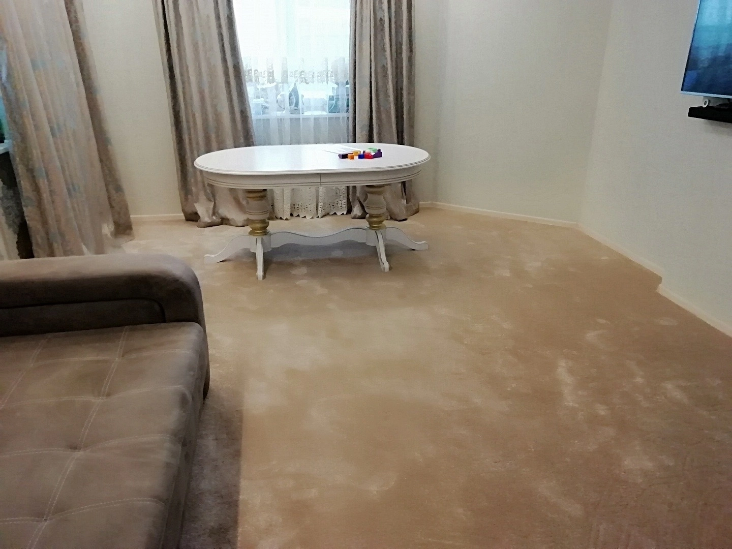 Укладка светлого ковролина в квартире