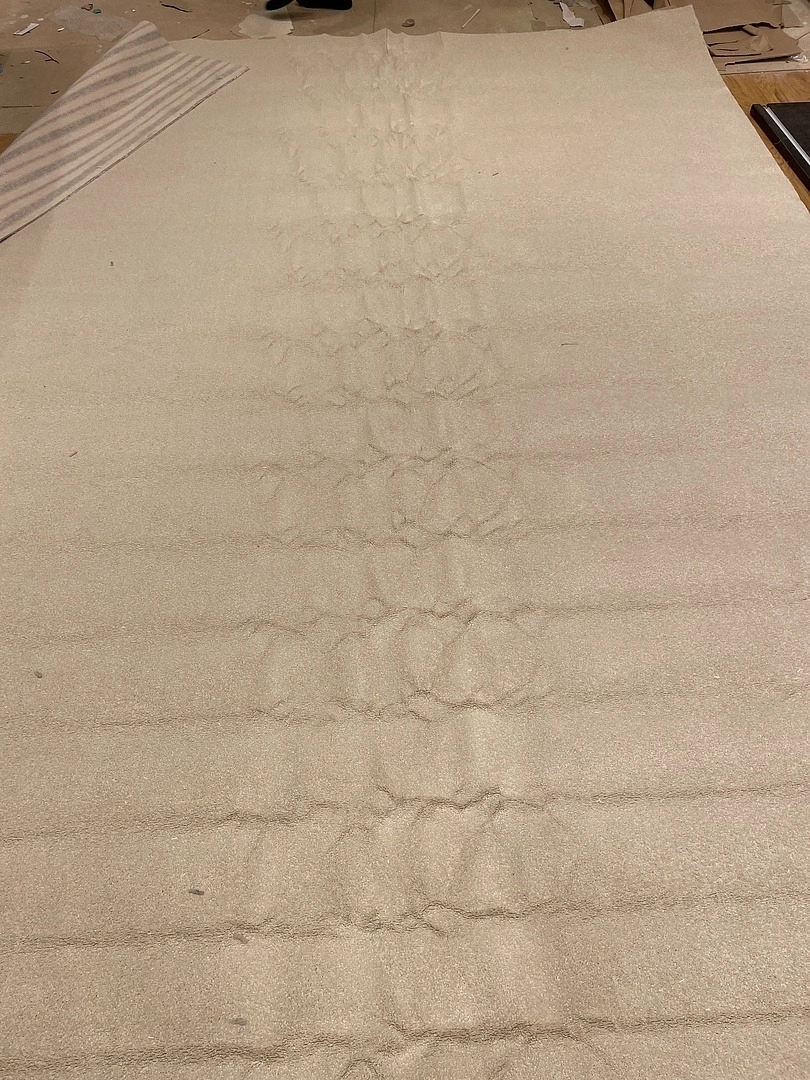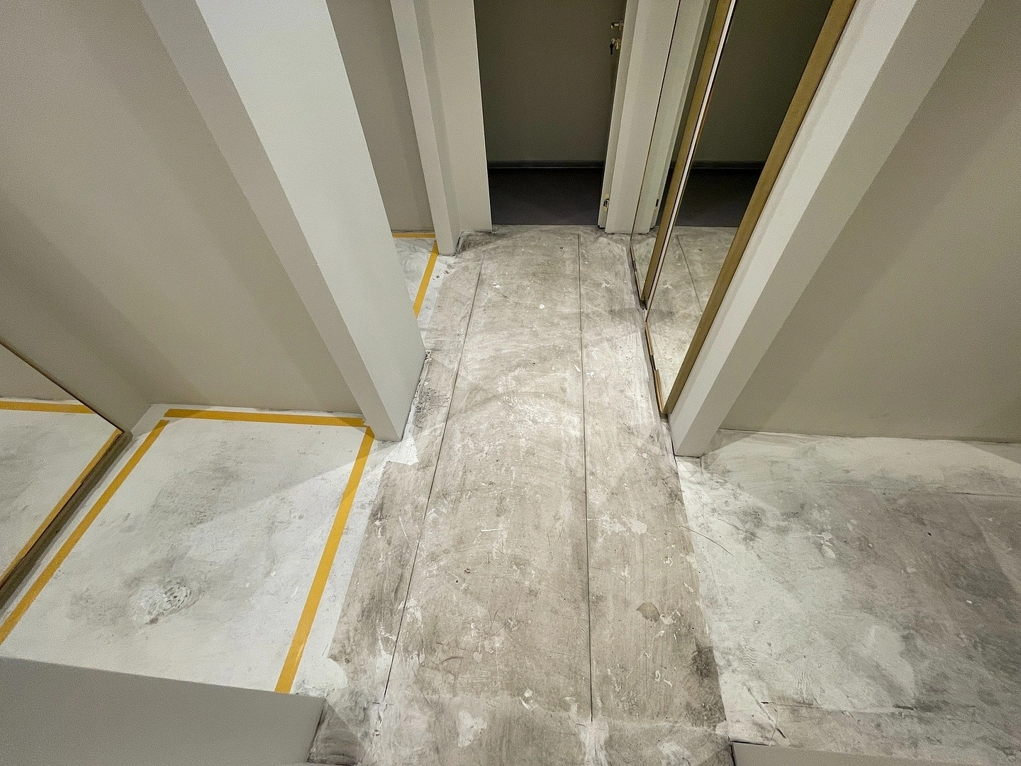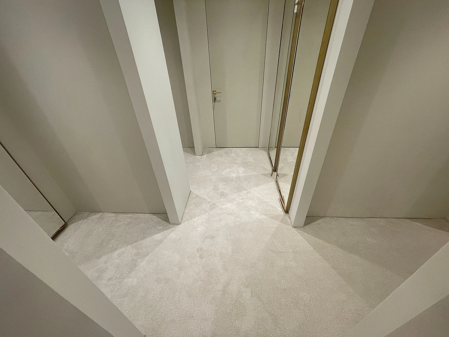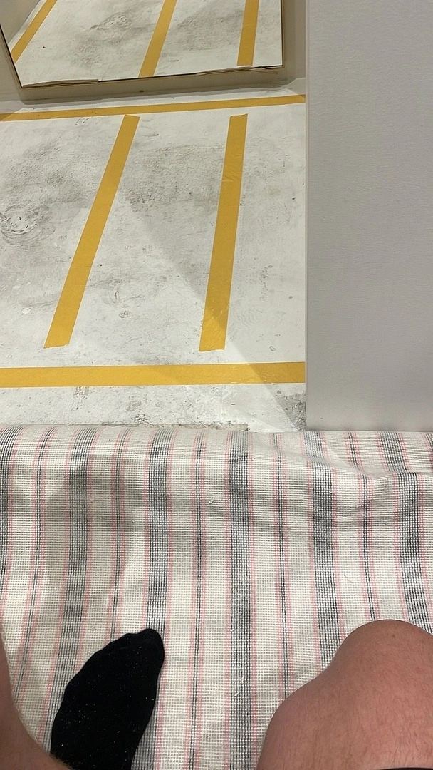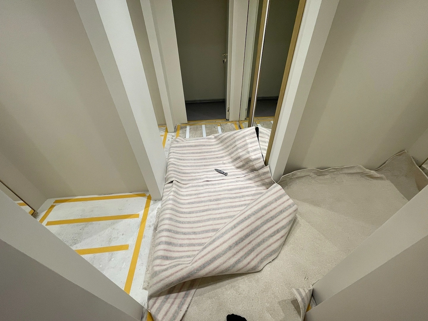 В примерочной произвели укладку ковролина на двусторонний скотч.Сделали оверлок.