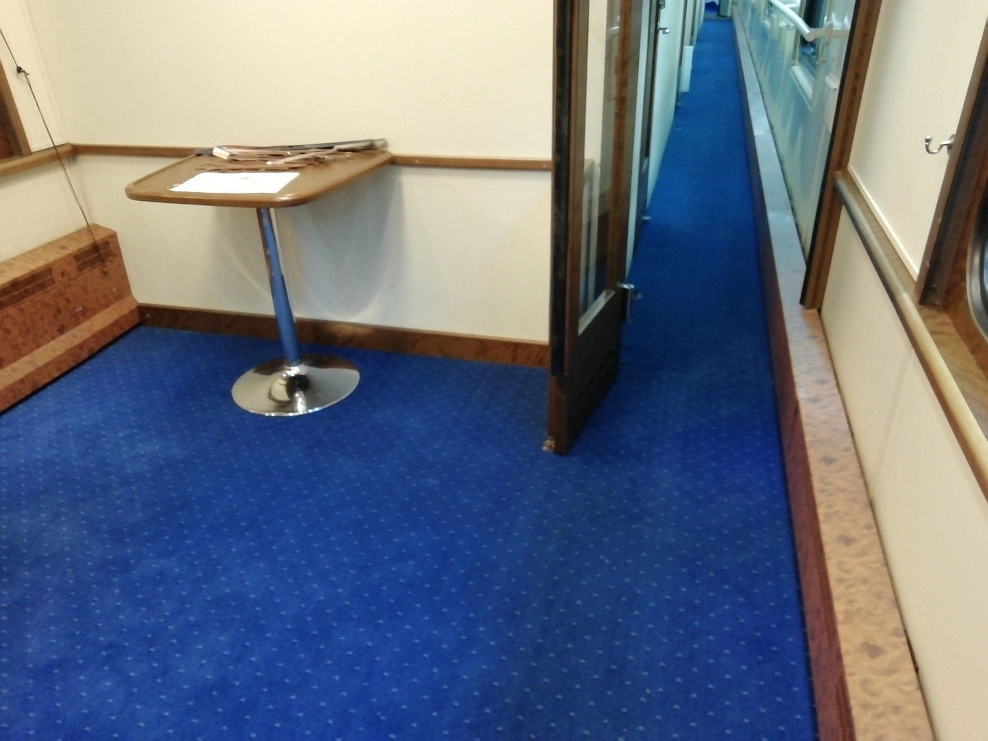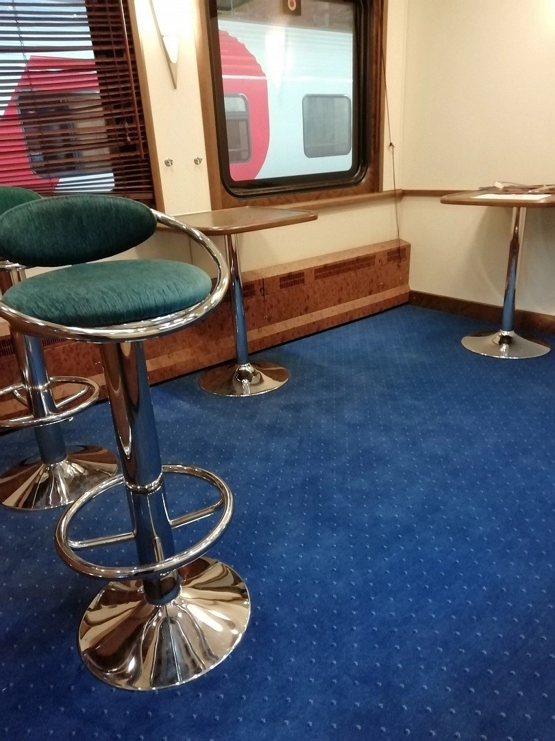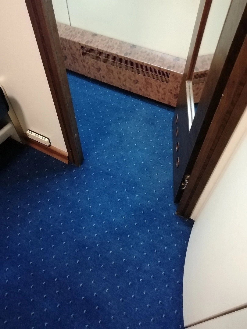 Заменили ковролин в вагоне поезда.