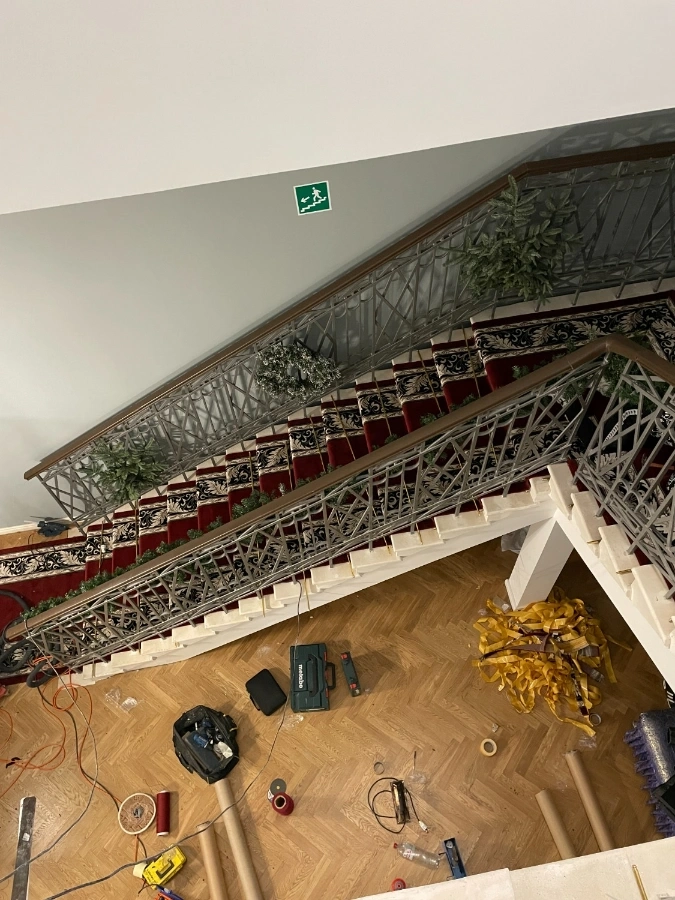 Укладка ковровой дорожки на ступени и лестницы в усадьбе Знаменское-Губайлово