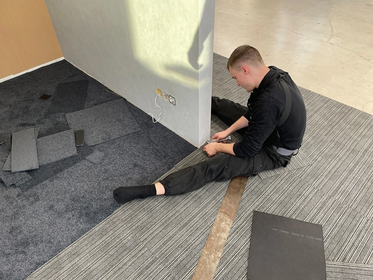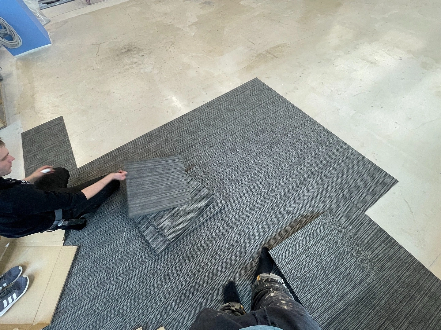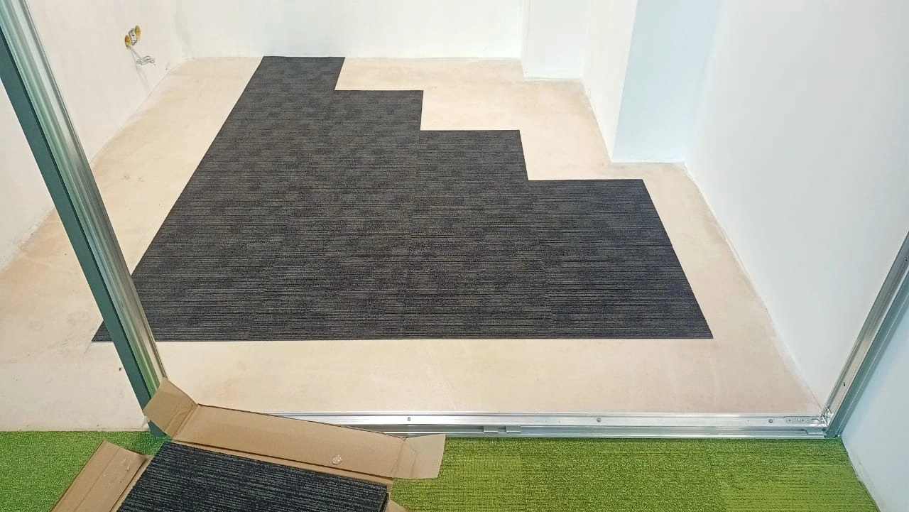 Укладка ковровой плитки в офисе мастерской "КОРОБКА МЕЛА"