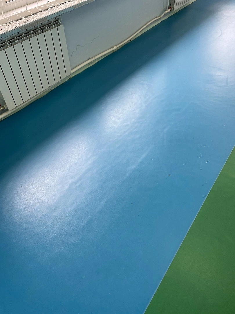 Уложили спортивный линолеум из 2 цветов. Сварили швы.