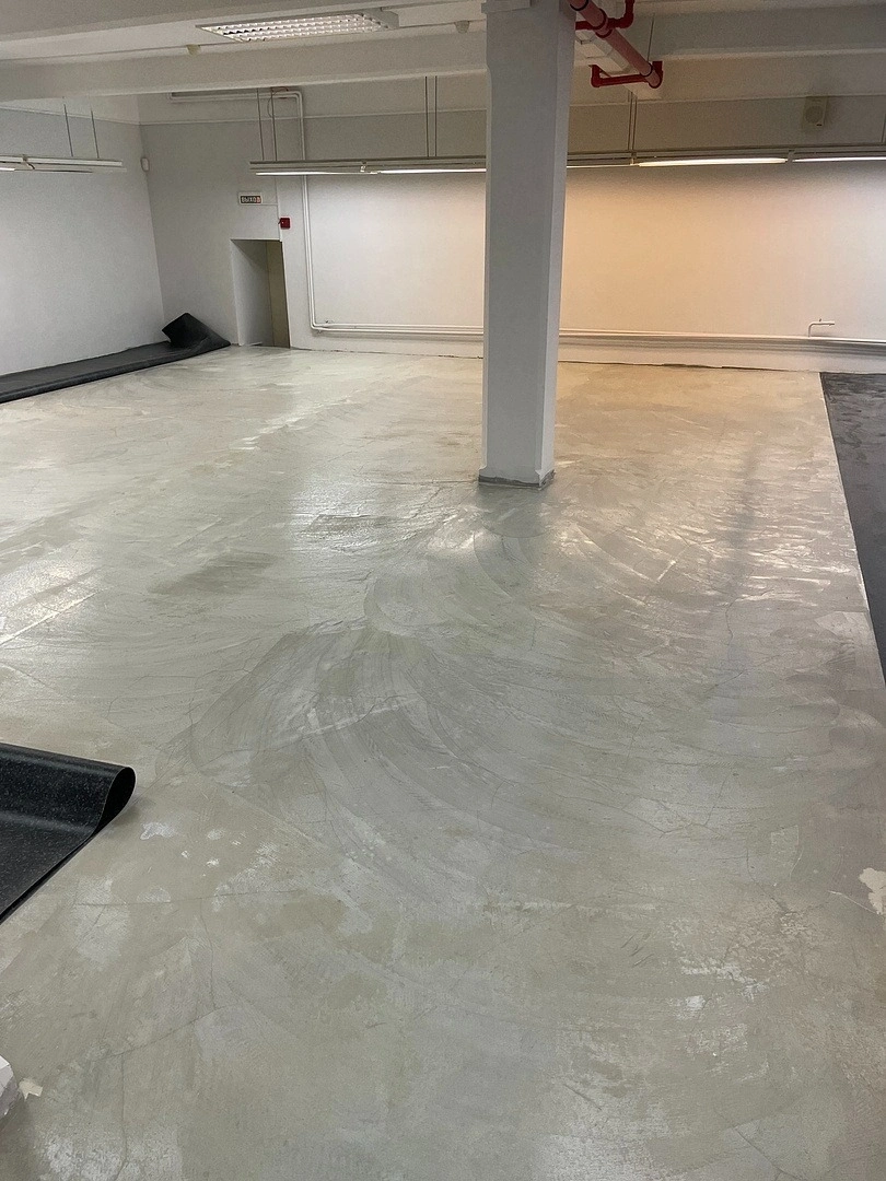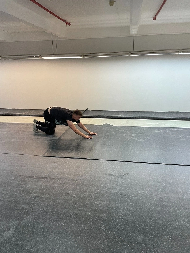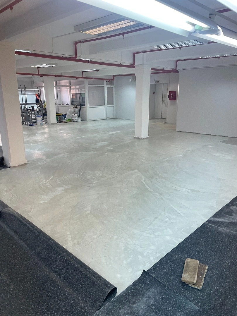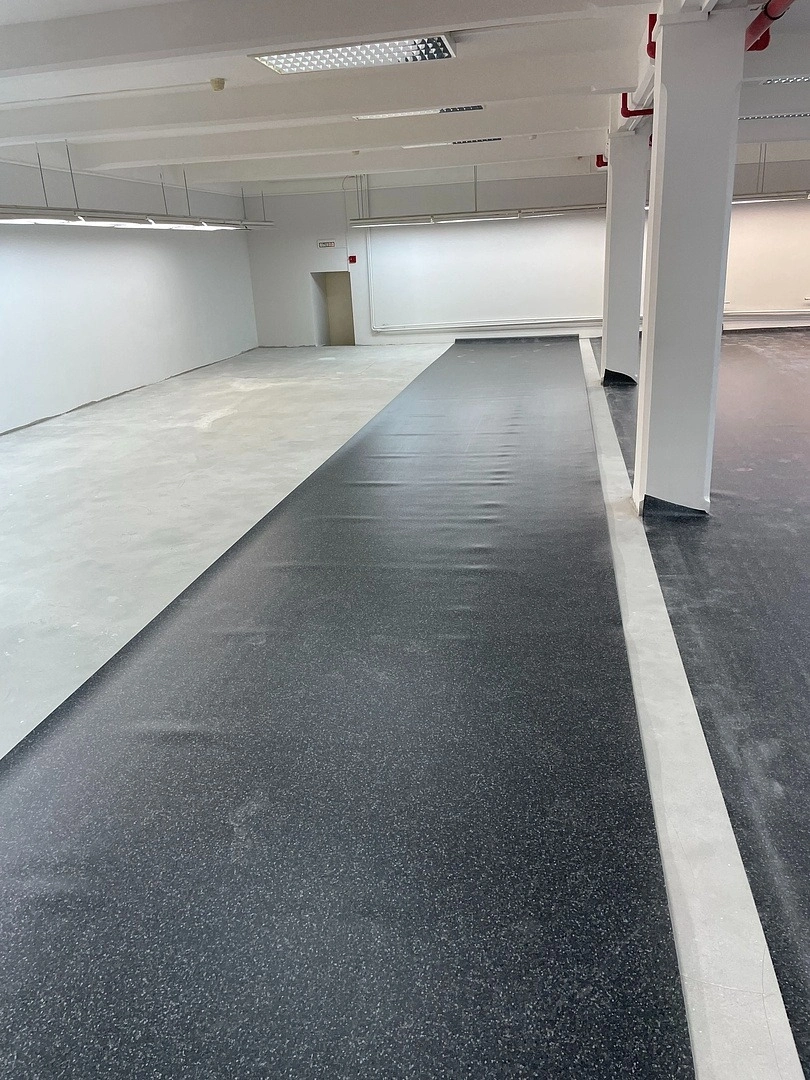 В холодильнике меховых изделий ,на клей уложили линолеум.Сделали сварку швов,убрали за собой.