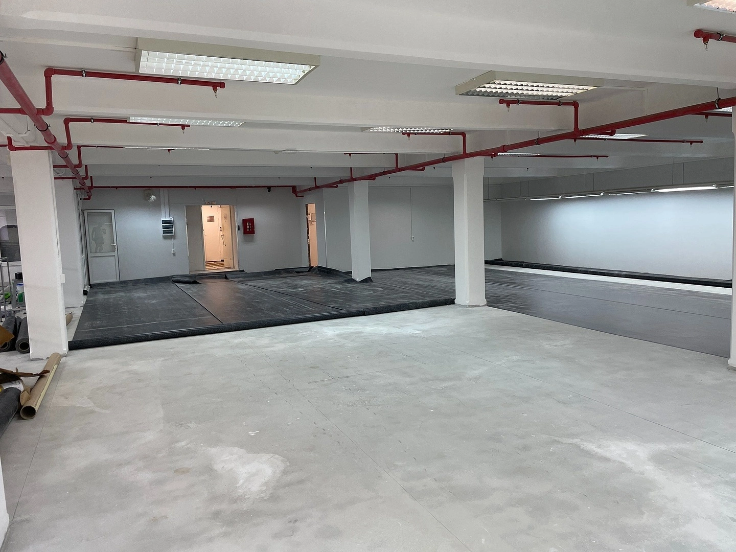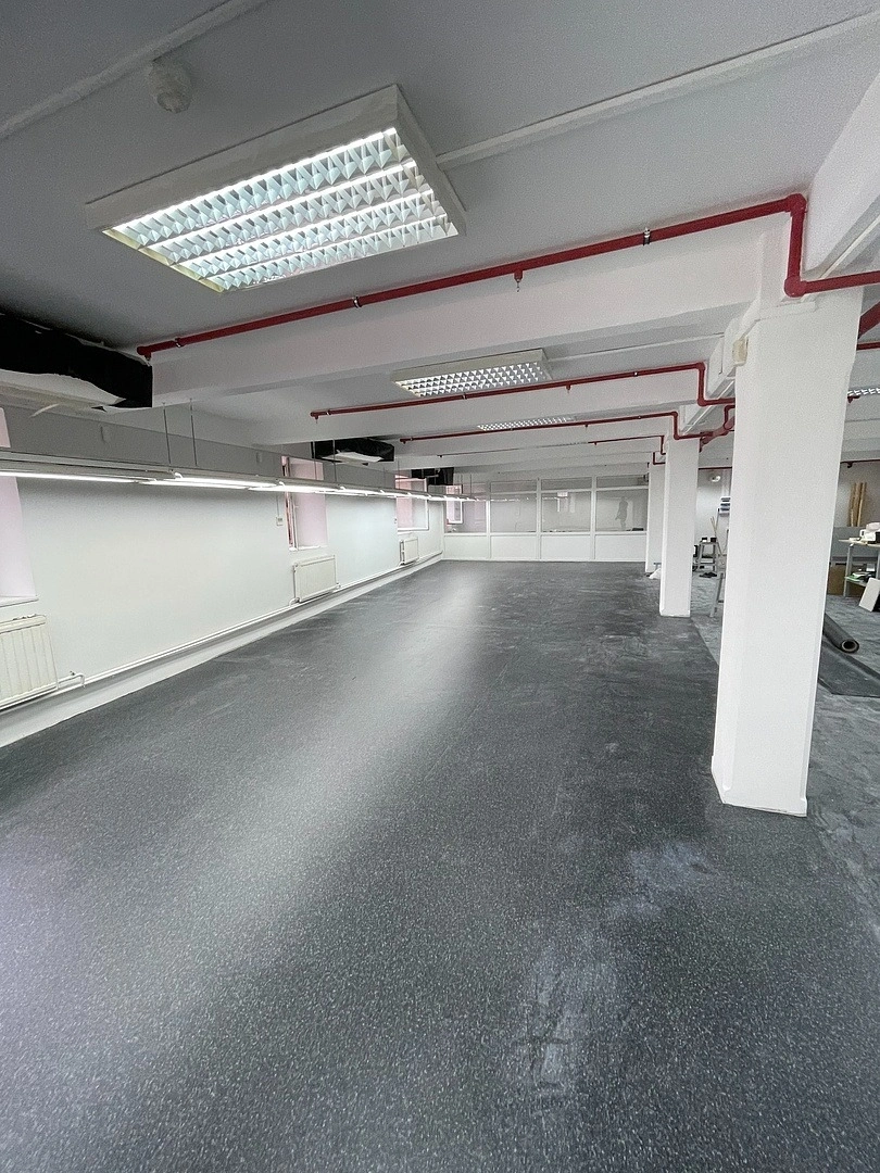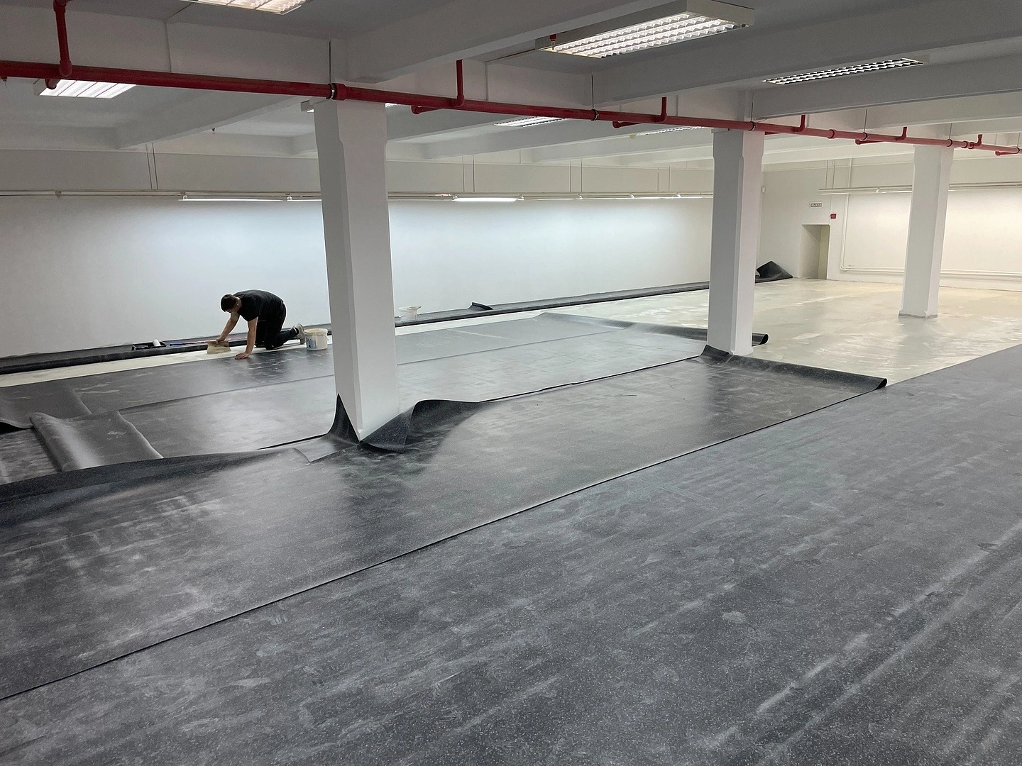 В холодильнике меховых изделий ,на клей уложили линолеум.Сделали сварку швов,убрали за собой.