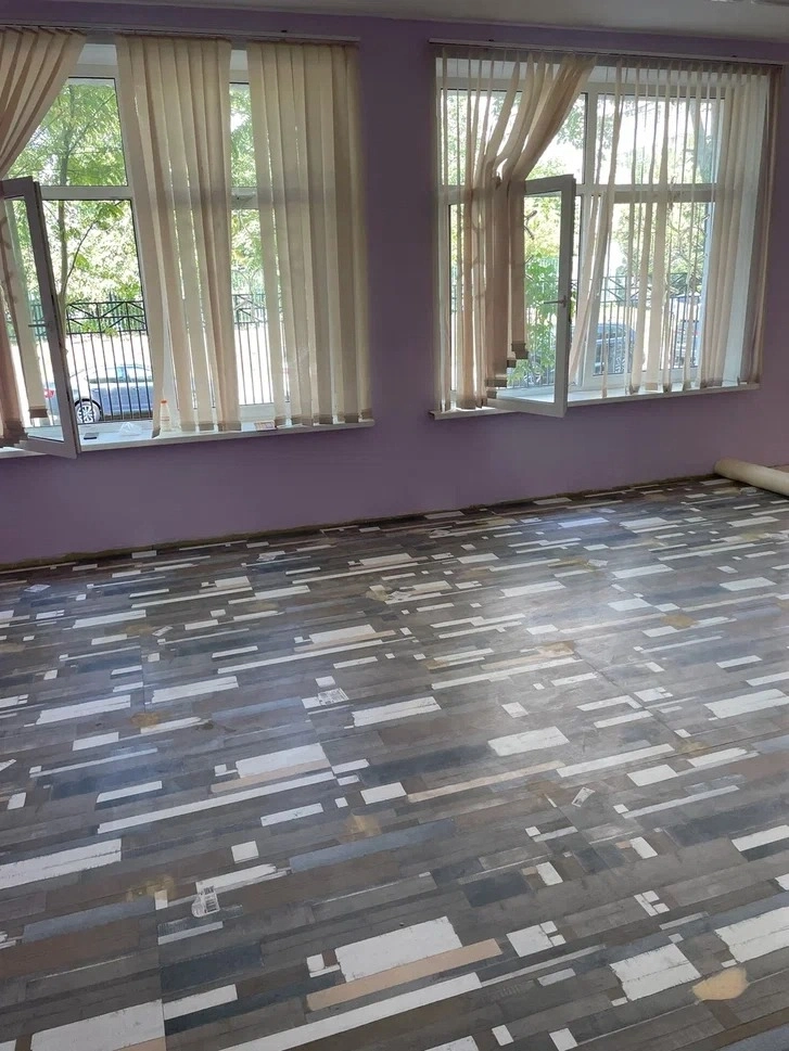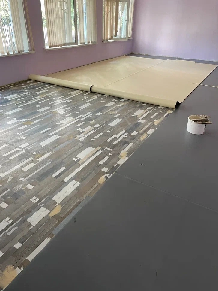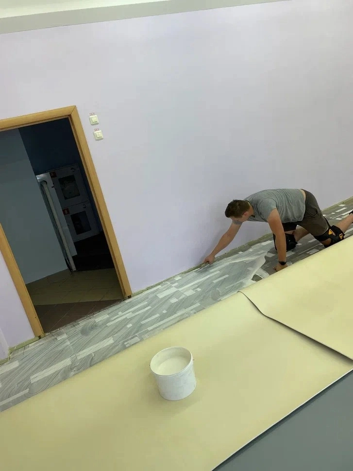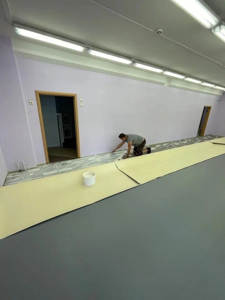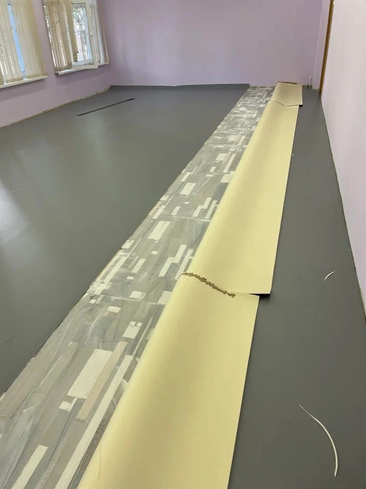 Укладка линолеума в МОУ школа имени А. П. Чехова