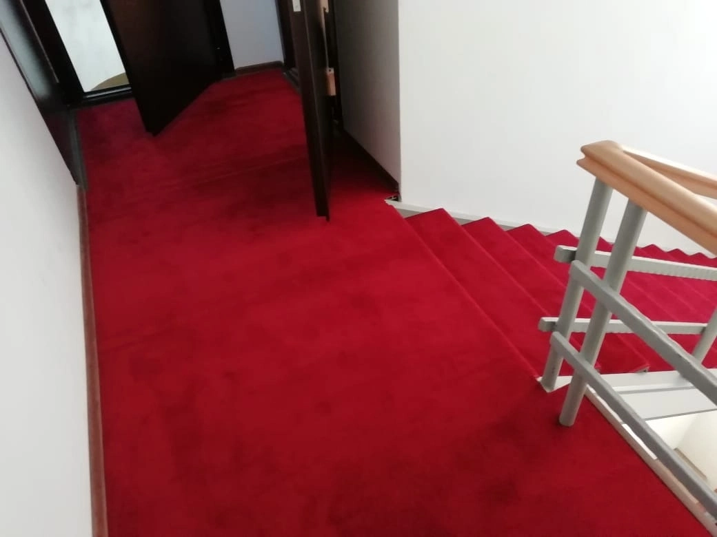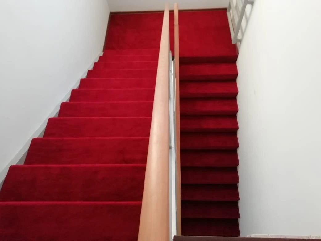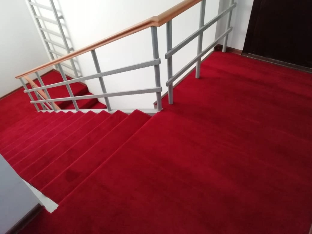 Укладка однотонной дорожки на лестницу