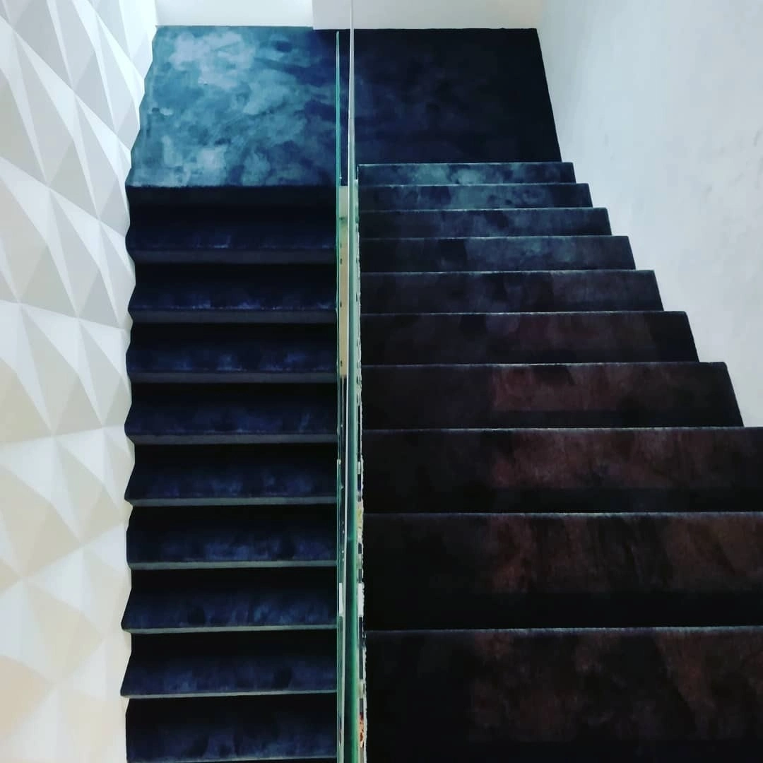 Укладка темного ковролина на лестницу