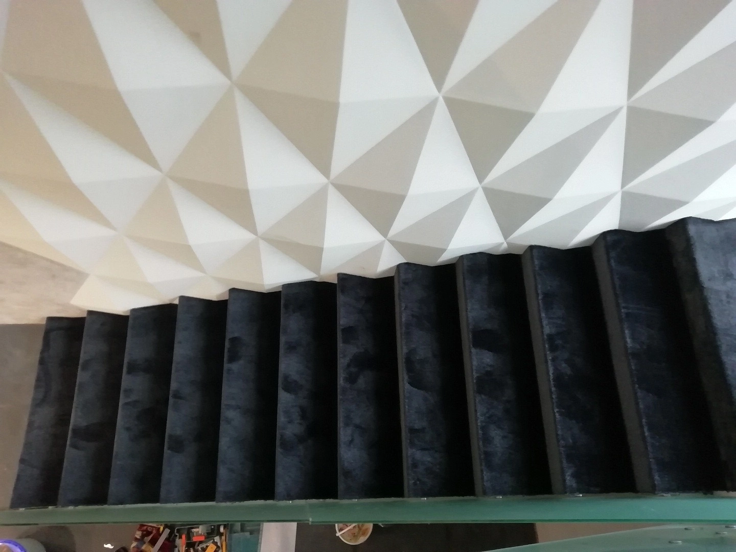 Уложили ковролин на лестницу.Спаяли швы и сделали оверлок.