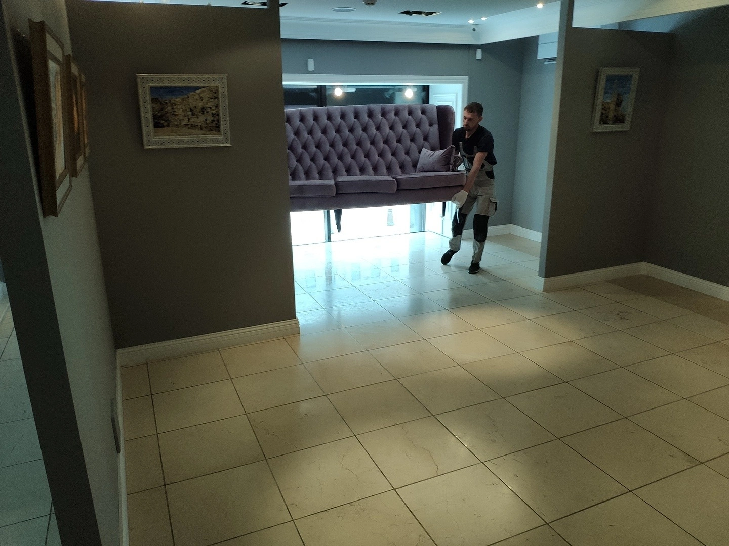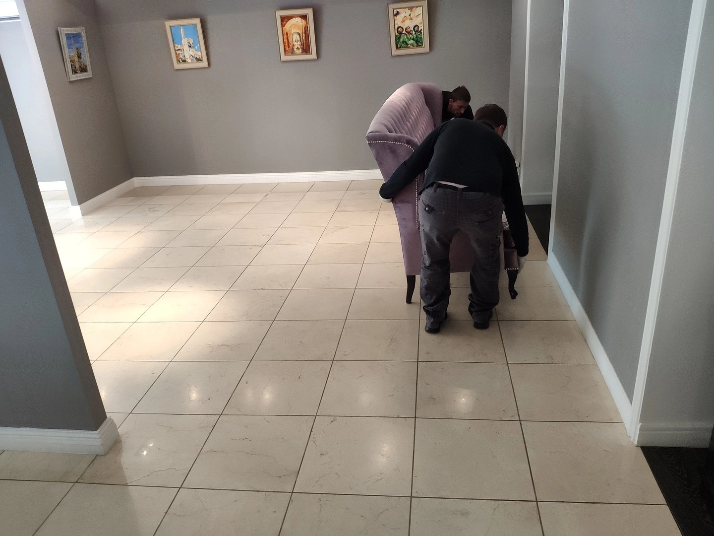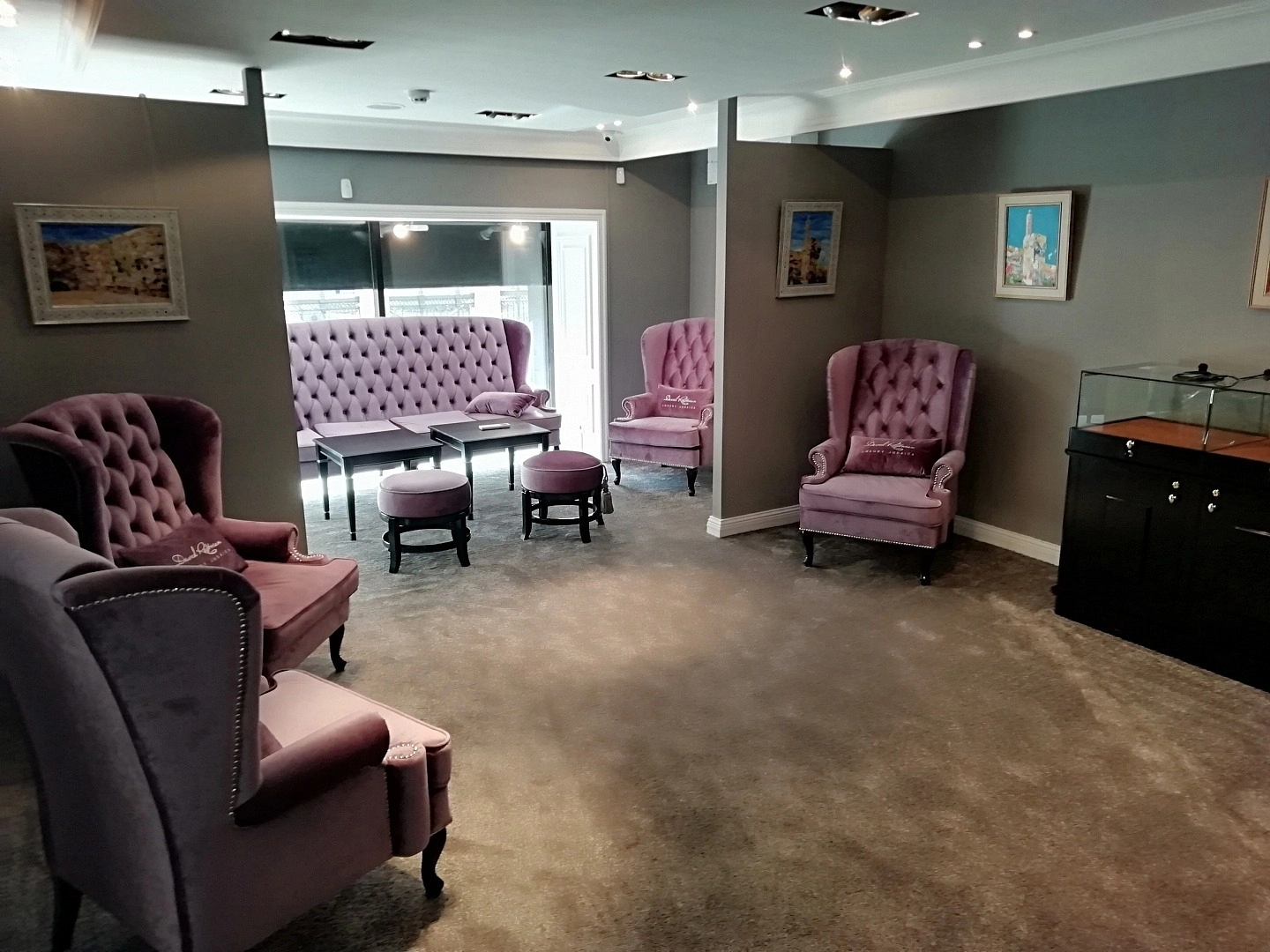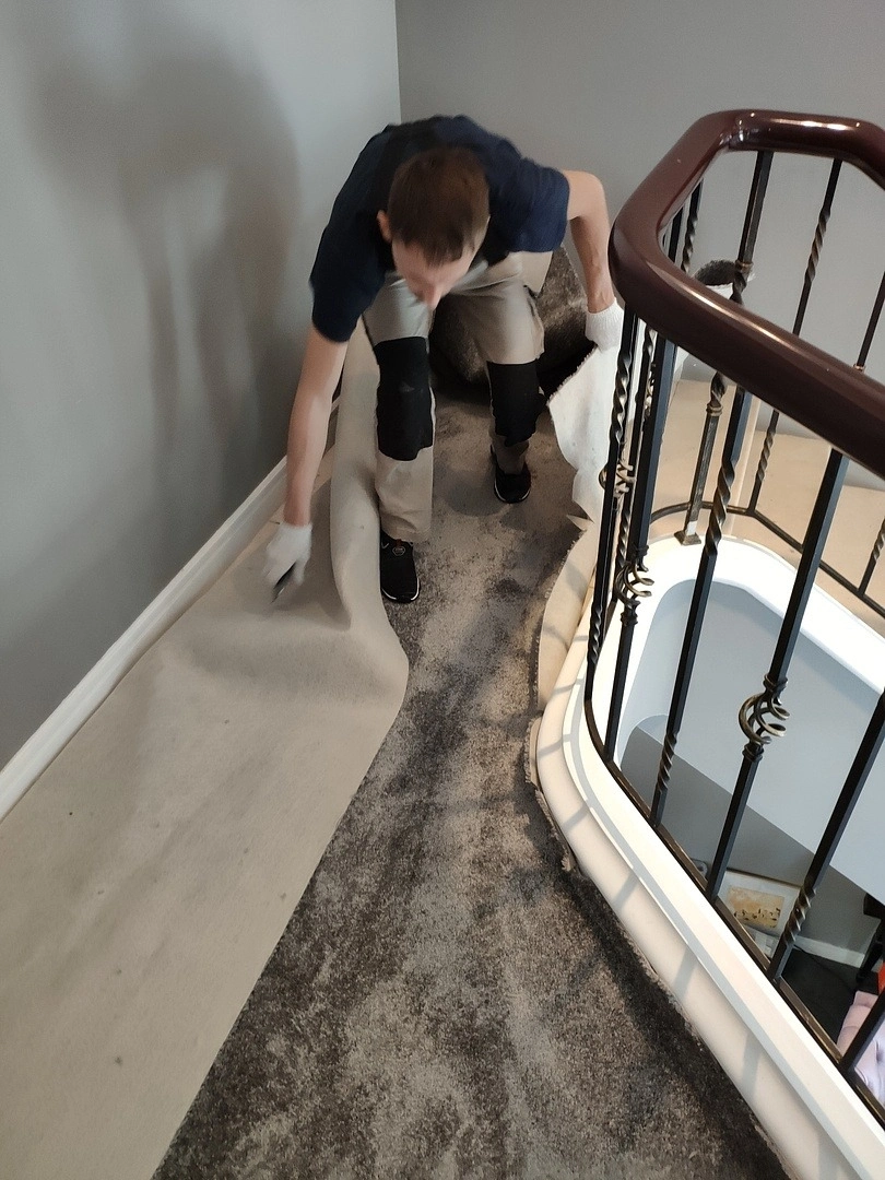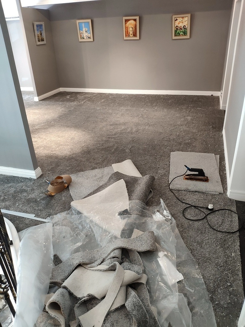 На лестнице и в клиентской зоне уложили Бельгийский ковролин . Оверлок и резку делали на месте.