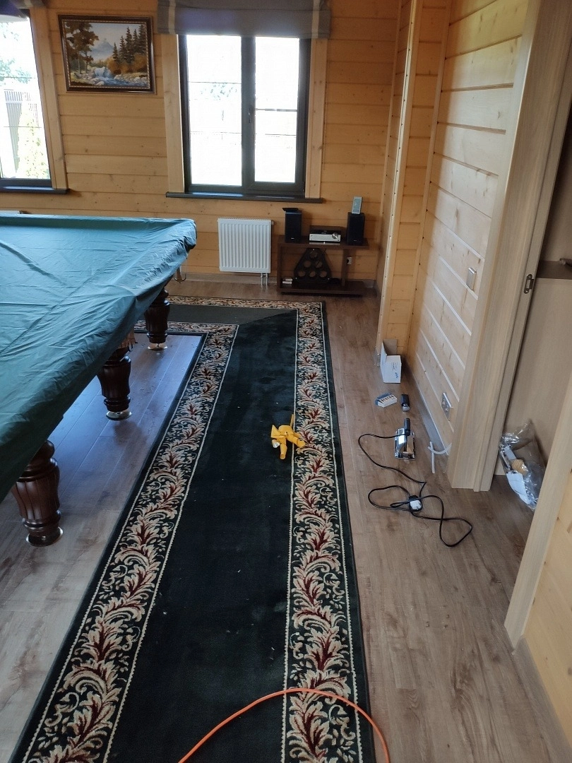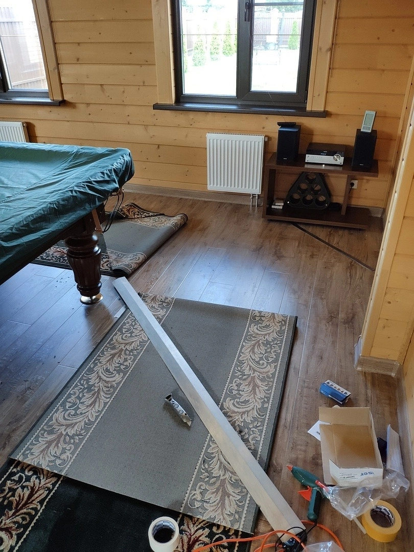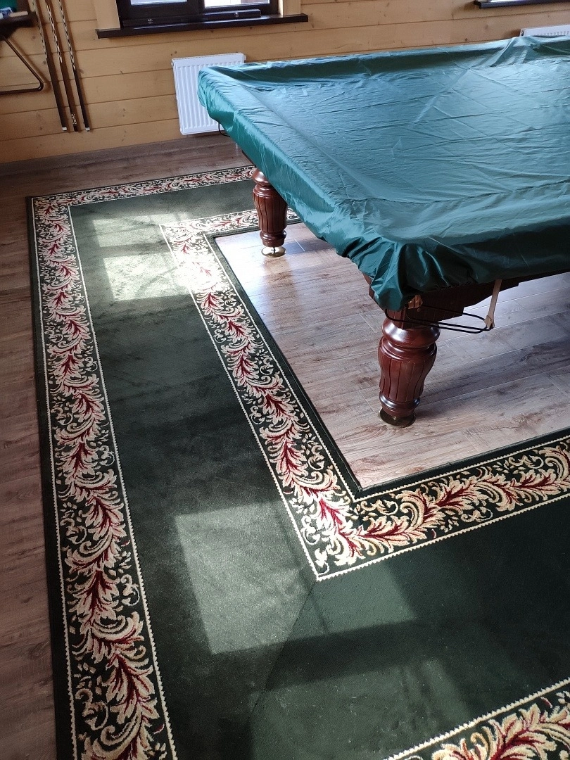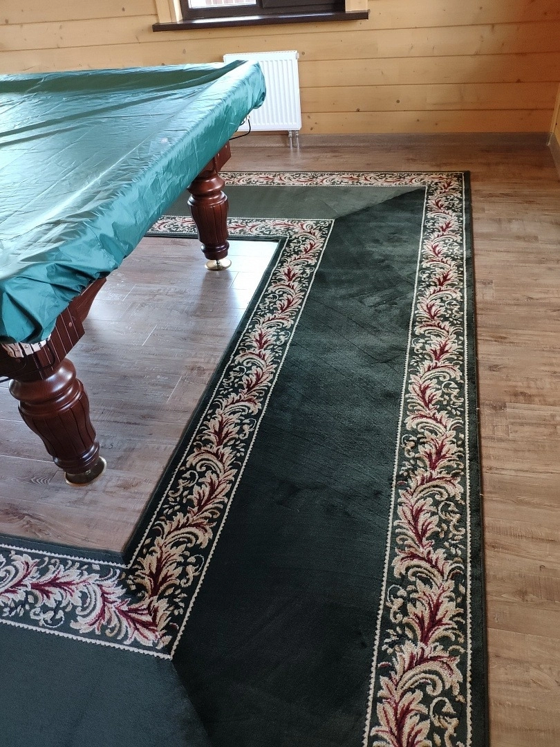 Вокруг бильярдного стола постелили дорожку из износостойкого и качественного материала. Сделали обрезку ,спаяли швы для того,чтобы сделать повороты. Клиент остался доволен свои выбором.